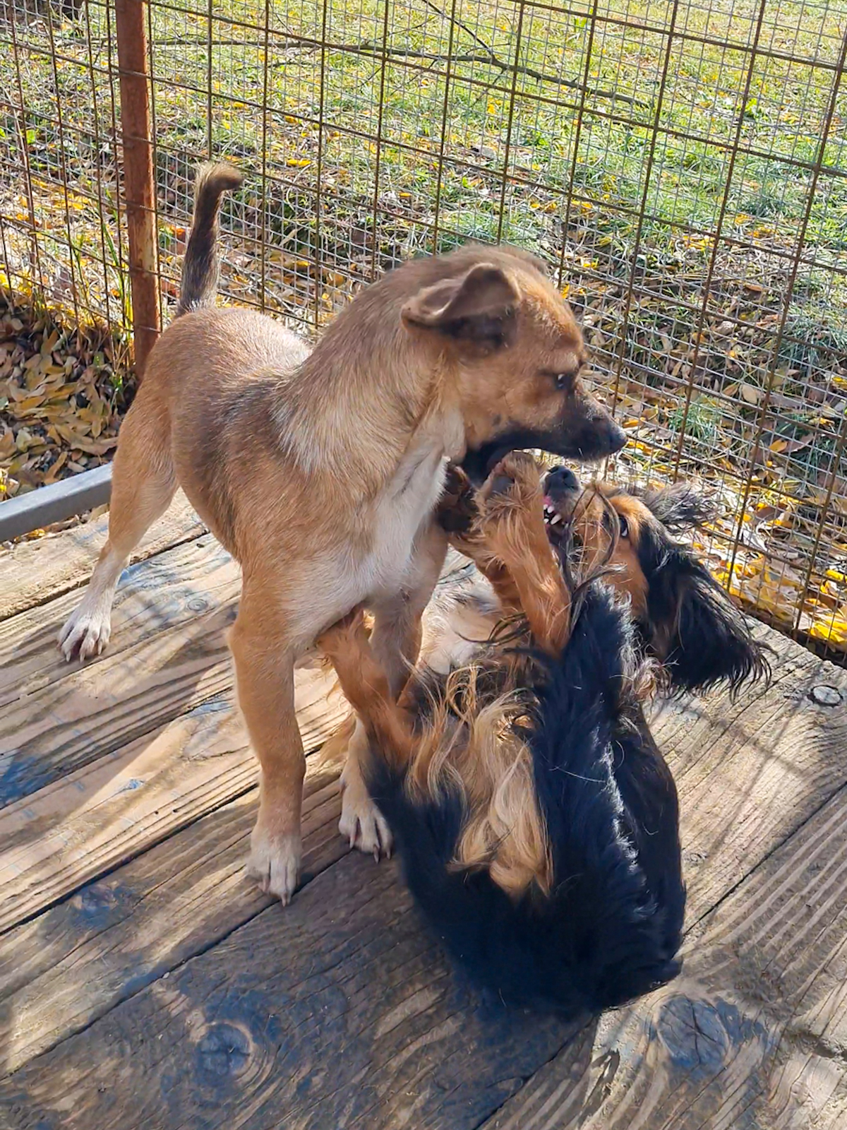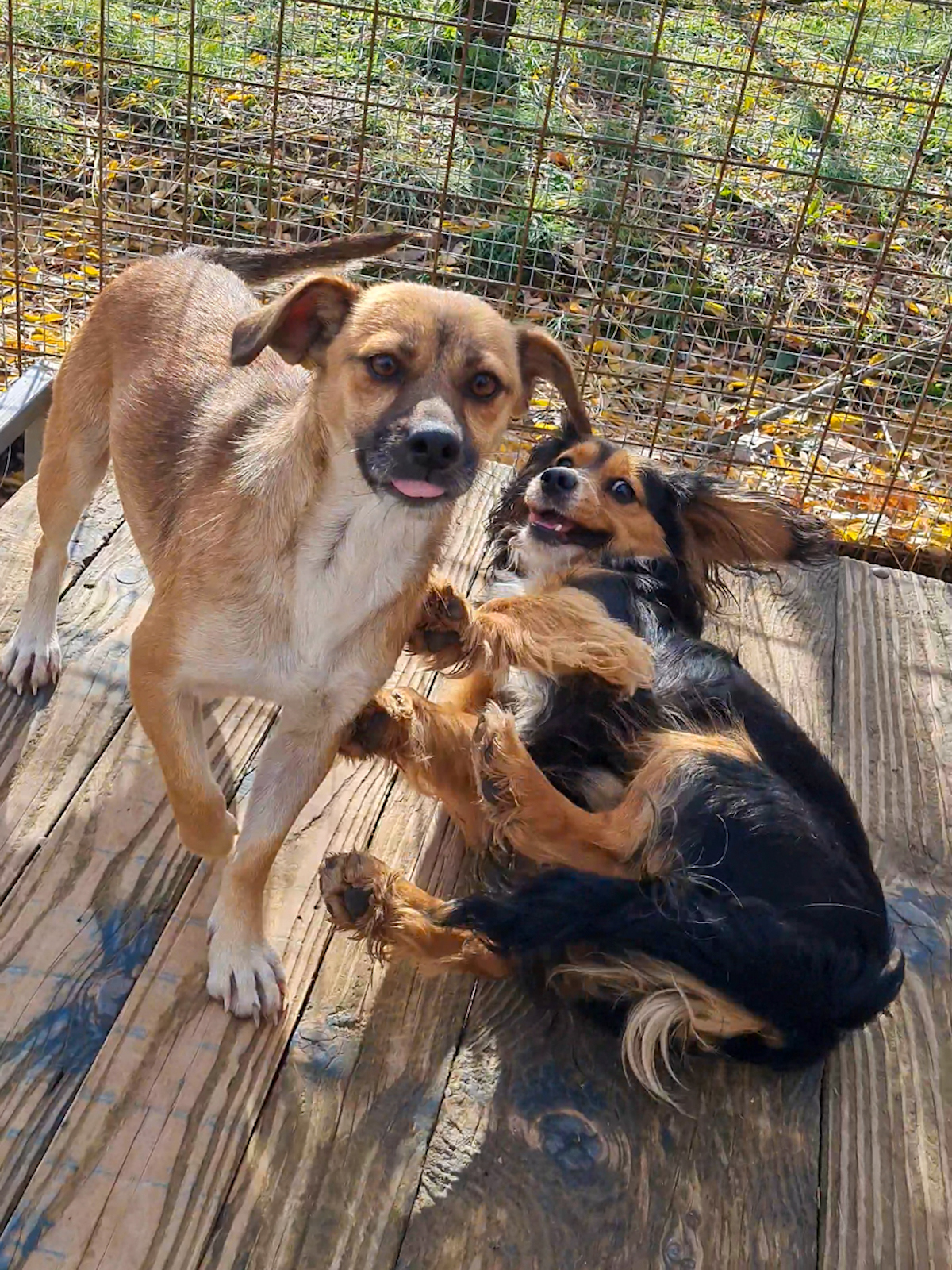 Im geschützten Tierheim konnte ich meine Babys liebevoll aufziehen und war eine großartige Mama für sie. Nun sind sie alt genug und ich kann wieder Dinge tun, die ein junger Hund eben gerne so tut – jede Menge spielen zum Beispiel! 😍 Ich habe hier wirklich tolle Freunde gefunden, mit denen ich am liebsten den ganzen Tag durch den Auslauf tobe und Quatsch mache. Ich bin zwar eine der Kleinsten hier, aber ich weiß genau, was ich will! Und eigentlich bin ich auch die Chefin von dem Laden hier, aber pssst, wir wollen ja nicht, dass sich jemand auf den Schlips getreten fühlt. 😌😂