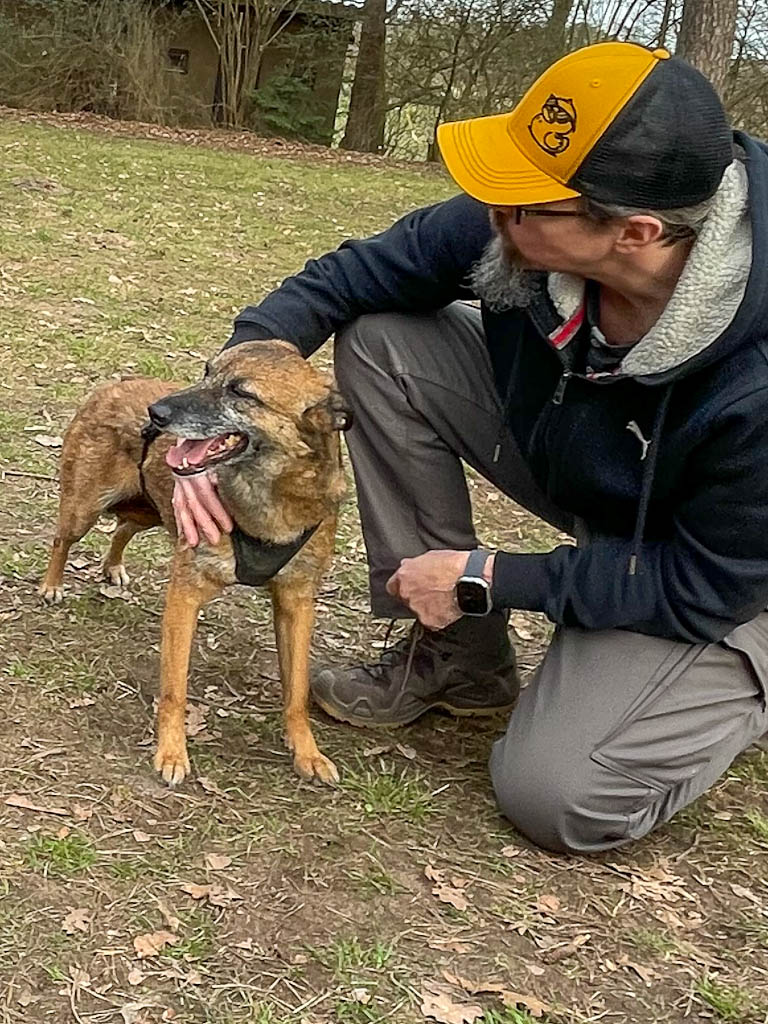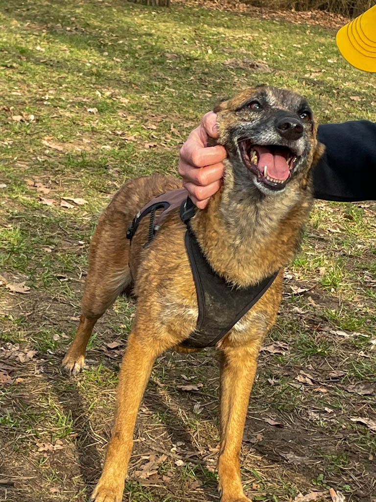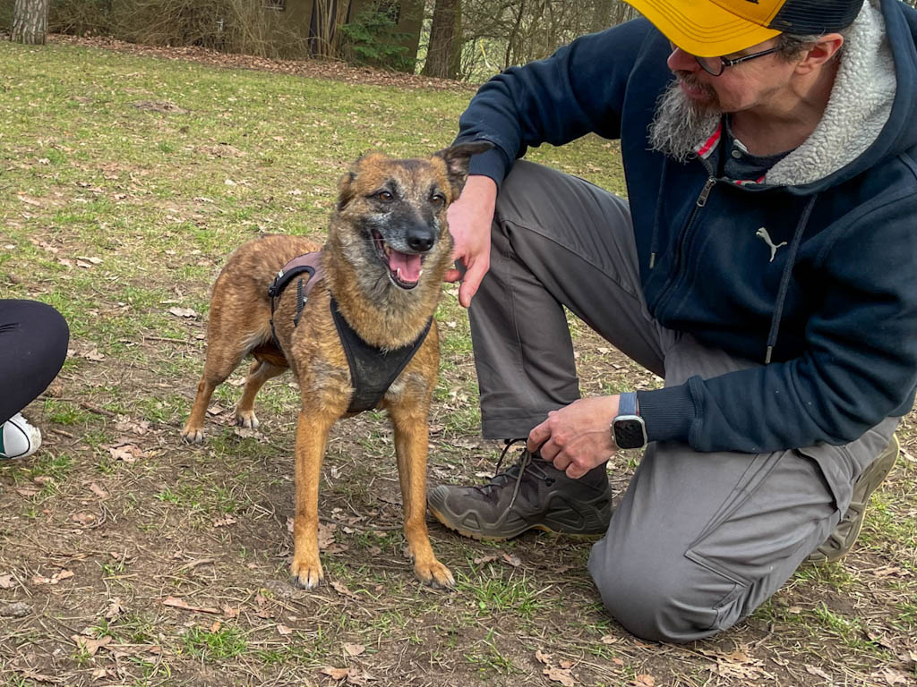 Ich muss zugeben, dass der Umzug erst mal ganz schön viel für mich war. Plötzlich war alles weg, was ich gewohnt war, dafür gab es sooo viele neue Eindrücke, Menschen, Gerüche, Situationen … 🫣 An mein kuscheliges Bett und die viele Liebe und Aufmerksamkeit, die ich von meinem Pflegepapa bekomme, konnte ich mich ziemlich schnell gewöhnen. 🥰 Ich zeige ihm jeden Tag, was für ein fröhliches, aufgewecktes, verspieltes und verschmustes Hundemädchen in mir steckt. 🥳 Die unbekannte Welt draußen, abseits vom Garten, erkunde ich lieber ganz in Ruhe, Schritt für Schritt. Das Gassigehen fällt mir immer leichter, hier gibt es natürlich besonders viel zu sehen und zu verarbeiten, das braucht Zeit und Geduld. Im Tierheim hatte ich immer viele Freunde, mit denen ich am liebsten den ganzen Tag gezockt habe, und ich war sehr bewegungsfreudig, aktiv, neugierig und vor allem richtig schlau. Hier in Deutschland taste ich mich langsam alles heran und bin optimistisch, dass ich mit etwas mehr Übung und Gewöhnung bald auch hier mein wahres Ich zeigen und spannende Ausflüge genießen kann. ☺️